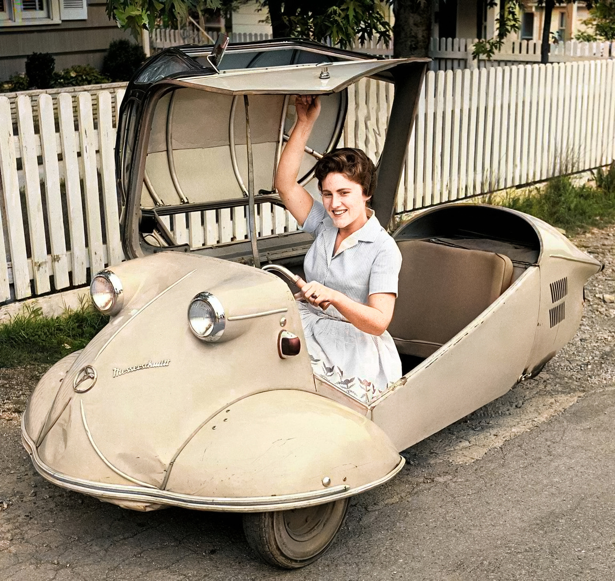Счастливая обладательница автомобиля Messerschmitt KR175 1955 года